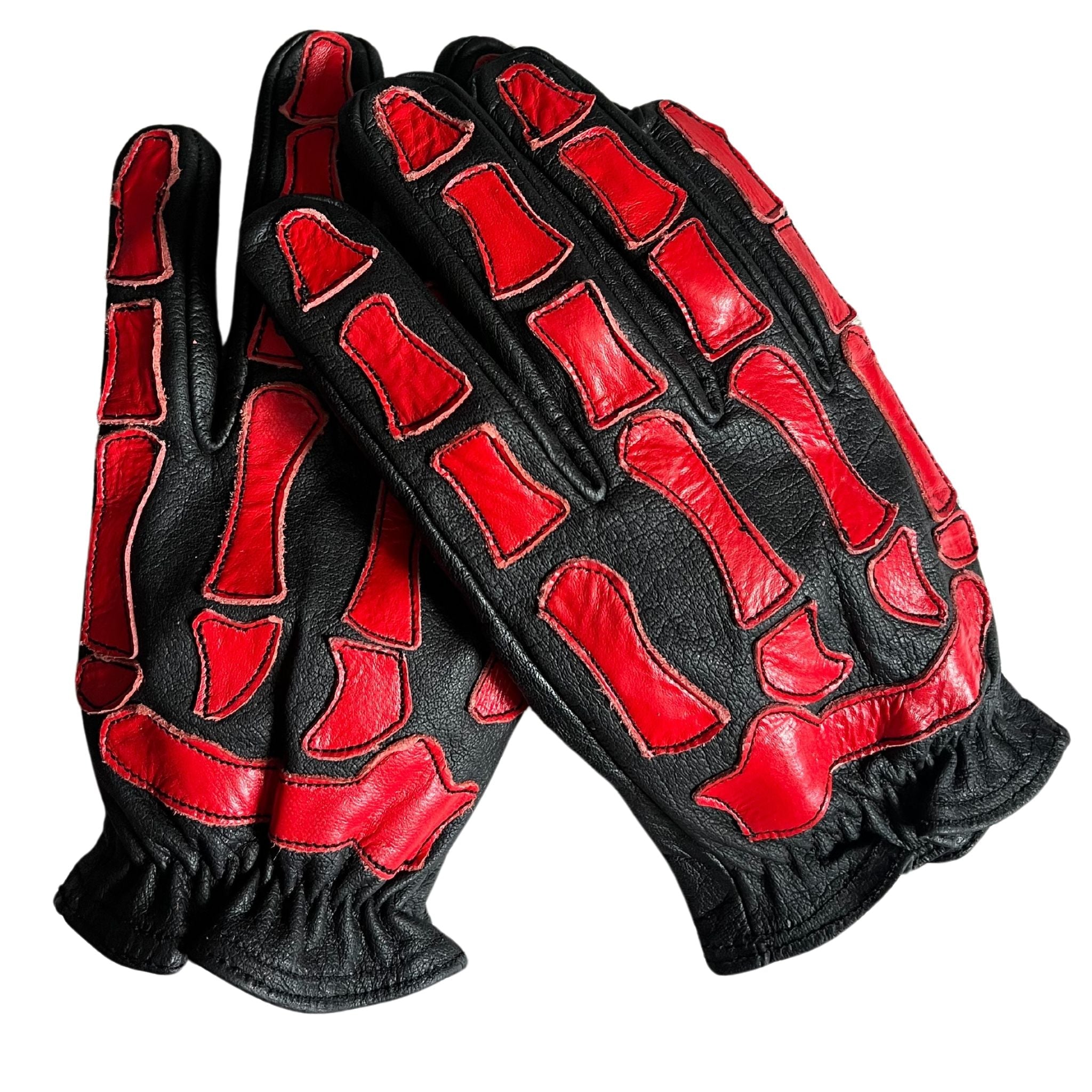 Black & Red Water Buffalo Skelton Motorcycle Glove